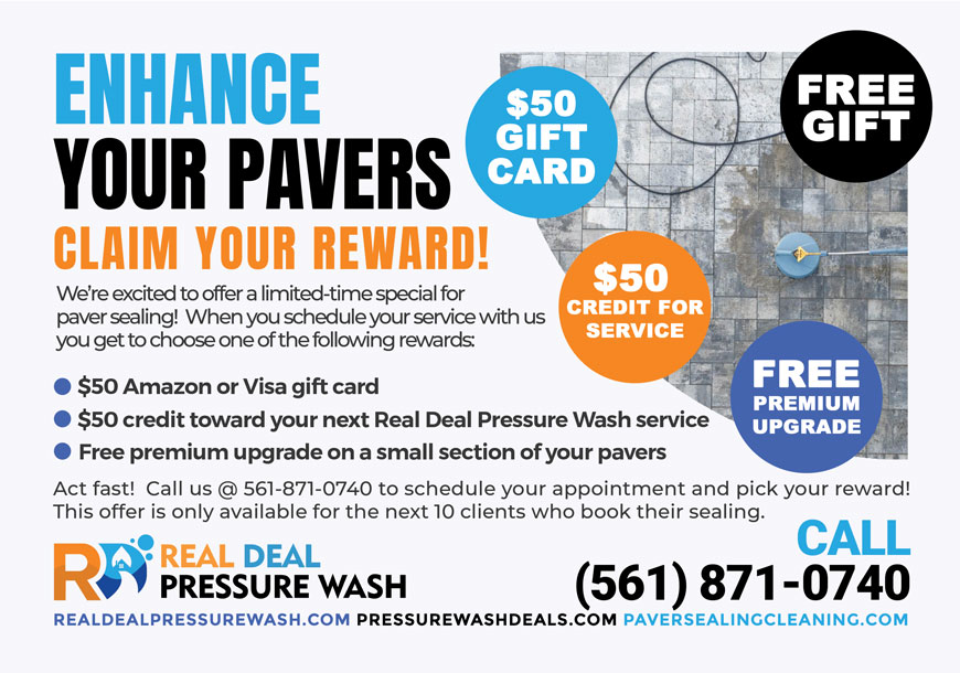 We’re excited to offer a limited-time special for paver sealing! When you schedule your service with us, you get to choose one of the following rewards: